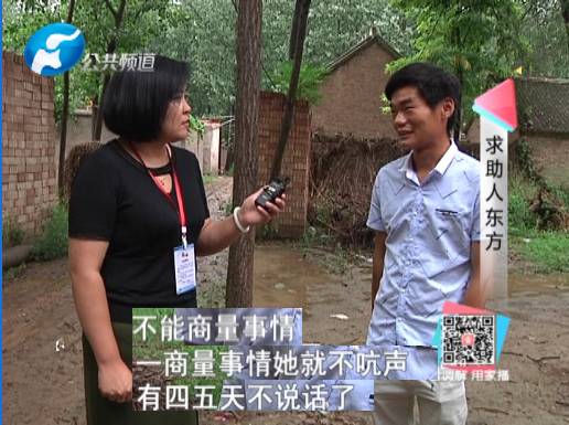 东方说,现在他和妻子燕燕一直处于冷战的状态,自己不知道如何化解眼前的问题,又不敢一走了之,弃妻子于不顾。