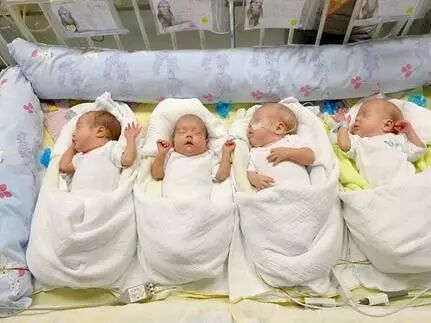 安内格雷特此前已有13个孩子,在小女儿的劝说下,她接受了试管受精,怀上了四胞胎。四胞胎在德国柏林的沙里泰医院出生,最小的孩子只有1磅7盎司(约652克),最大的也不过2磅2盎司(约964克)。经过3个月左右的治疗和观察,医生认为孩子们可以出院,并能健康地活下去。