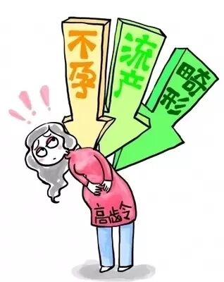易流产:高龄孕妇的流产率为30%-40%。由于高龄孕妇本身的年龄增大,导致了遗传物质非常容易发生畸变或发生异常,在高龄孕妇流产比率中,仅染色体异常一项就占50%-80%。