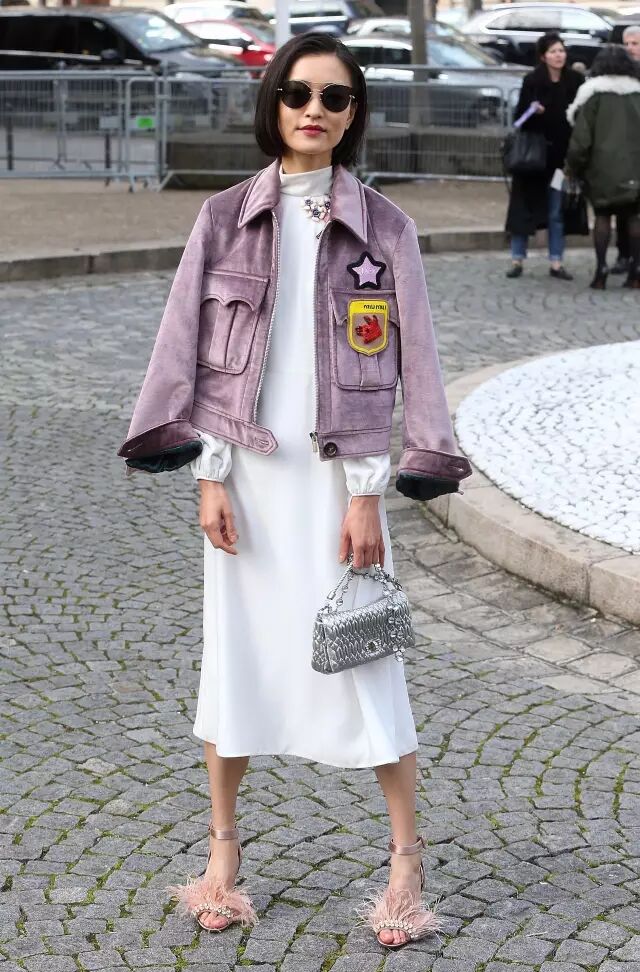 杜鹃还身穿Miu Miu 2017早秋系列白色连衣裙现身Miu Miu 2017秋冬时装发布秀,清冷淡雅,浅笑嫣然。