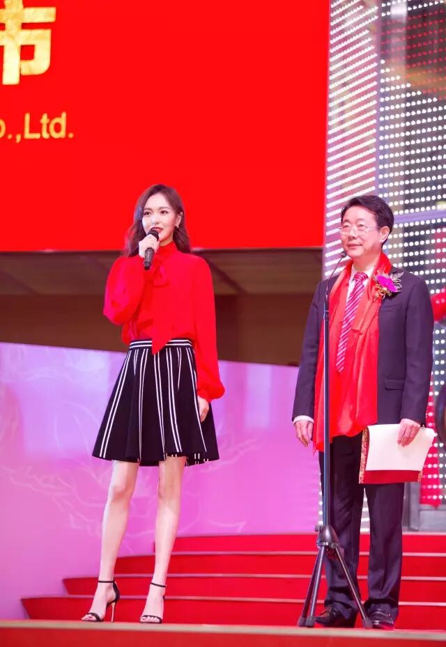 身着Chris by Christopher Bu 2017春夏系列红色衬衫和2017早春系列黑色半裙,脚踩Sergio Rossi高跟鞋出席在上海举办的品牌活动。