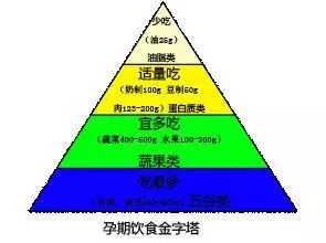 1、孕期饮食金字塔顶层:油脂类食物。食用油每天以不超过25克为宜;