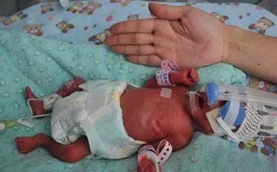 当胎儿出生后,护士却被吓得不敢抱,孩子就如同一个手巴掌那么大,重1斤1两,一出生就被送进了重症监护室