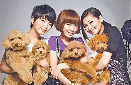 06年Selina养的红贵宾“Pinky”生了“小贵”、“小宾”和“狗狗”,Ella、Selina和Hebe各分1只,三人就经常带着爱犬伐木累聚会!
