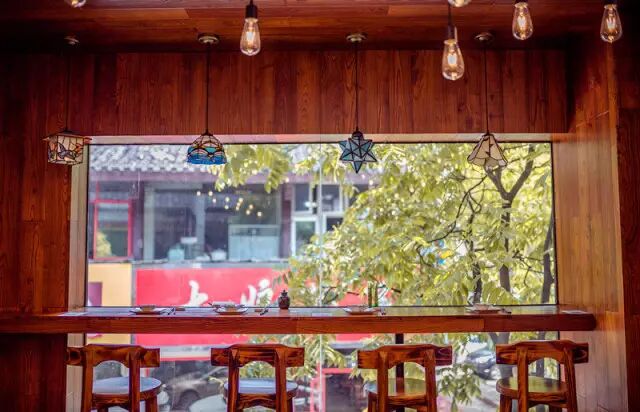 二楼窗外,大娘饺子犹如一位风姿绰约的老妇,静待岁月安好。而这边,寿司小店则恰如一位花样年华的异国少女,期待日后的绽放。