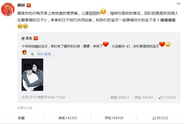 最好的家教,就是爸爸爱妈妈!今天看到我喜欢的歌手张杰宣布喜欢谢娜怀孕的消息,只想对那个小宝宝说:你有福了,遇见这么恩爱的父母!当然,每一对恩爱夫妻的孩子也都同样有福!