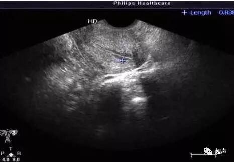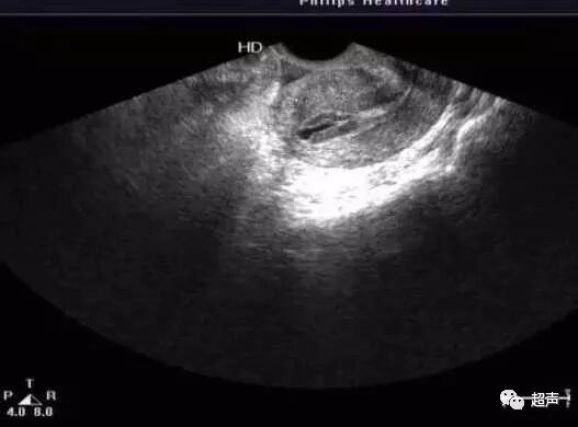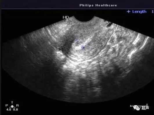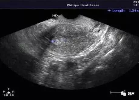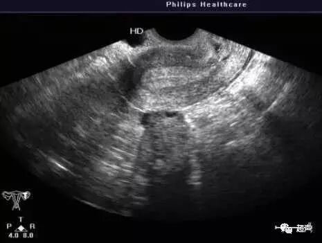 B型内膜常见于内膜增生晚期(排卵前后),排卵时内膜厚度约为9-12mm,为均一的中等强回声,宫腔强回声中线断续不清。