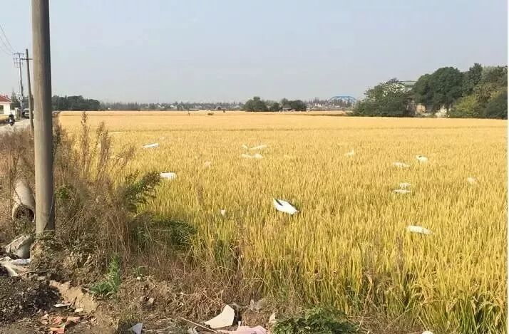 有人在处理燃爆时飞到农田里的垃圾
