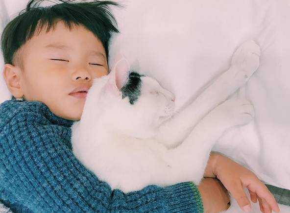 Ty也变得越来越依赖这只小花猫了,睡觉都要靠的足够近。