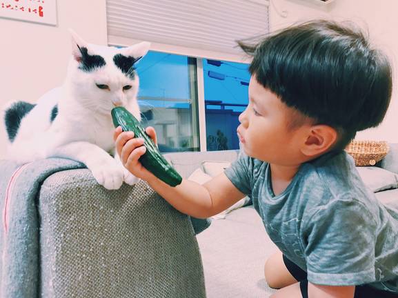 奶牛喵在Ty妈妈怀孕的时候就来到了这个家,因此在Ty来到这个世界前,他们已经有了交流。