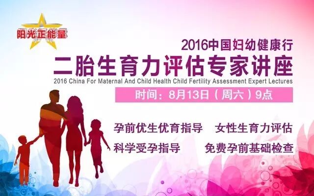 新文化报特别开展“2016中国妇幼健康行——二胎生育力评估专家讲座”, 于8月13日(本周六)上午9时开讲。届时特邀国家级助孕专家王雷教授、吉林省著名妇科微创专家包永胜主任讲授二胎备孕健康知识,并对大家进行孕前优生优育指导、女性生育力评估、科学受孕指导等,讲座结束后将为参加的女性进行免费孕前基础检查。欢迎22—45岁女性报名参与。