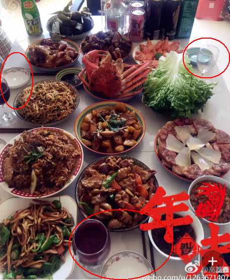 还有人发现她晒出的年夜饭中,有两套一样的大人餐盘酒杯,还有一套小孩子用的,且酒杯中没有酒