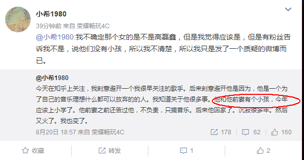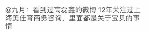网友称高磊鑫曾在2012年微博关注了育儿咨询信息