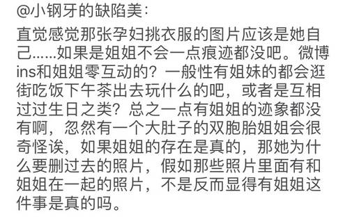 但是网友扒出她并没有双胞胎姐姐,而她ins上的关注和互动中都没有发现有姐姐的信息