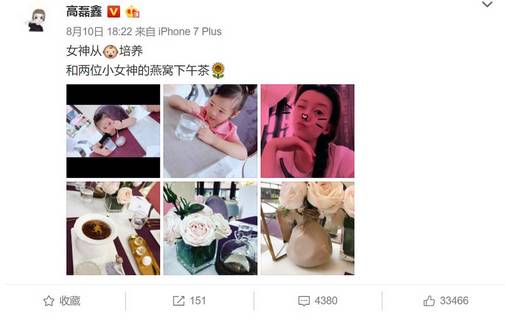高微博也晒出过和两位小女孩一起喝下午茶的照片