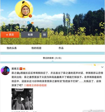 网友猜测李雨桐和薛之谦爆料中反映出的薛那么怕高磊鑫,正是因为高为他生下了孩子这个把柄在