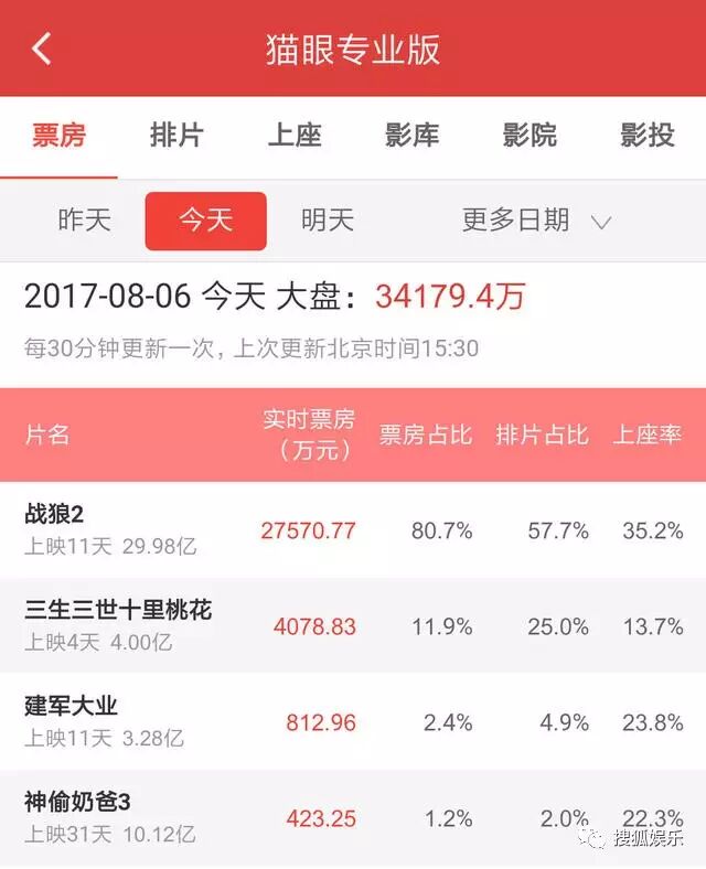 《战狼2》上映来口碑票房俱佳,几乎每天都在破新纪录。截至今天下午15点40分,仅仅上映11天的《战狼2》,票房已破30亿了……