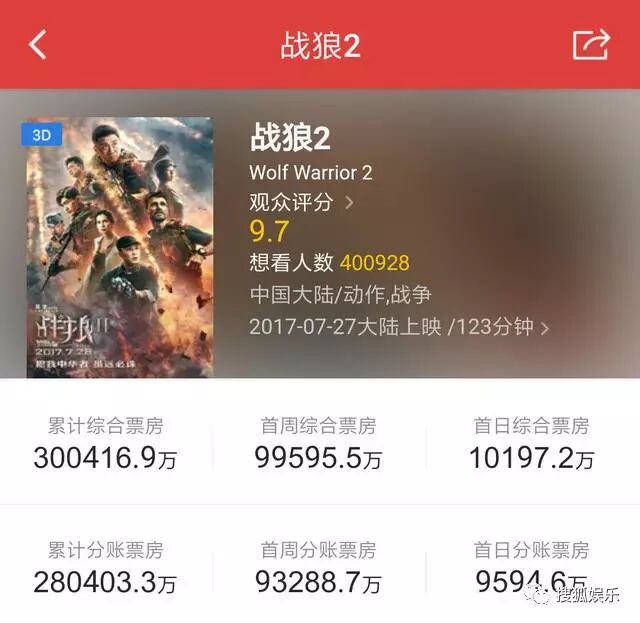 按这种一天飚三亿的节奏…《战狼2》的票房最后能达到多少真是不敢想象了……