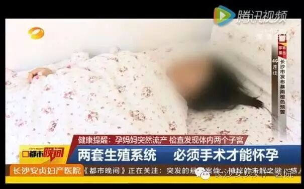 来自吉首的小陈家住砂子塘,怀孕已有5个月,但是在家休息的时候,突然有流产的现象,这可吓坏了小陈,也急坏了家人。于是赶紧把她送到附近的长沙安贞妇产医院。经医生检查发现,小陈的子宫横径增宽,可以看到两个宫腔线,中间是倒八字间隔,影像初步显示,她有两个宫腔。