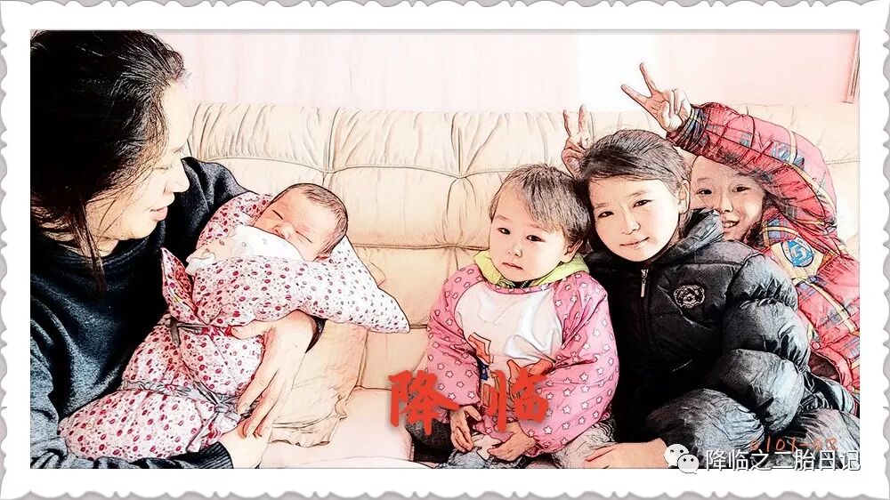 当清脆地敲门声响起的时候,新年的气氛终于被准时引爆,宝哥欢呼雀跃着跑去开门,朋友家原本还略显矜持的两个小公主,在门口探头探脑地张望了片刻之后,便跟着宝哥一溜烟儿地跑去房间看小宝宝了。三个小家伙,几乎是不由分说地便都爬到了床上,靠着床头一字排开,充满了好奇地打量着宝妈怀里软绵绵的小宝宝,发出了一阵难以置信的叽叽喳喳的惊呼。是啊,他们原本也都还是小宝宝,但是面对才出生十几天的小宝宝,明显还是觉得不可思议。而小宝宝似乎被几个小哥哥小姐姐的兴奋吓了一跳,原本还在熟睡当中的小家伙,突然睁开眼睛,有点儿恐慌地向四周打量了一下,但是却并没有哭闹,而是很高傲地又转过头去,扎进妈妈的怀里吃奶去了,哈哈。