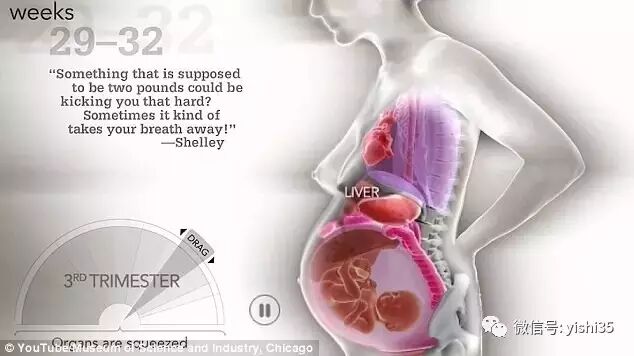 近日,《每日邮报》上发的一段视频吸引了小编的眼球,此视频展现了怀孕对母亲的影响,随着胎儿的增长,母亲体内的脏器不断发生变化以便为胎儿更多的空间。
