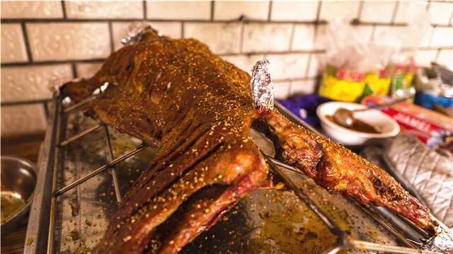 和烤全羊一样的烹制方法是一样的,味道也是相同的,肉质酥软可口,回味久久。