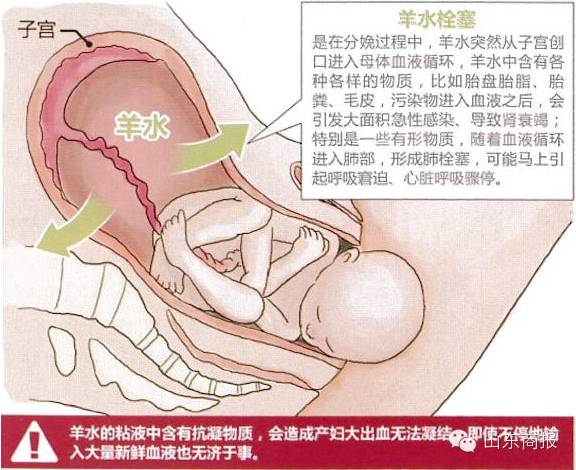 羊水栓塞是由于分娩时羊水进入到母体的血液循环中,引起肺栓塞,严重的休克及血液不凝固的情况,使产妇发生不可控制的大出血。