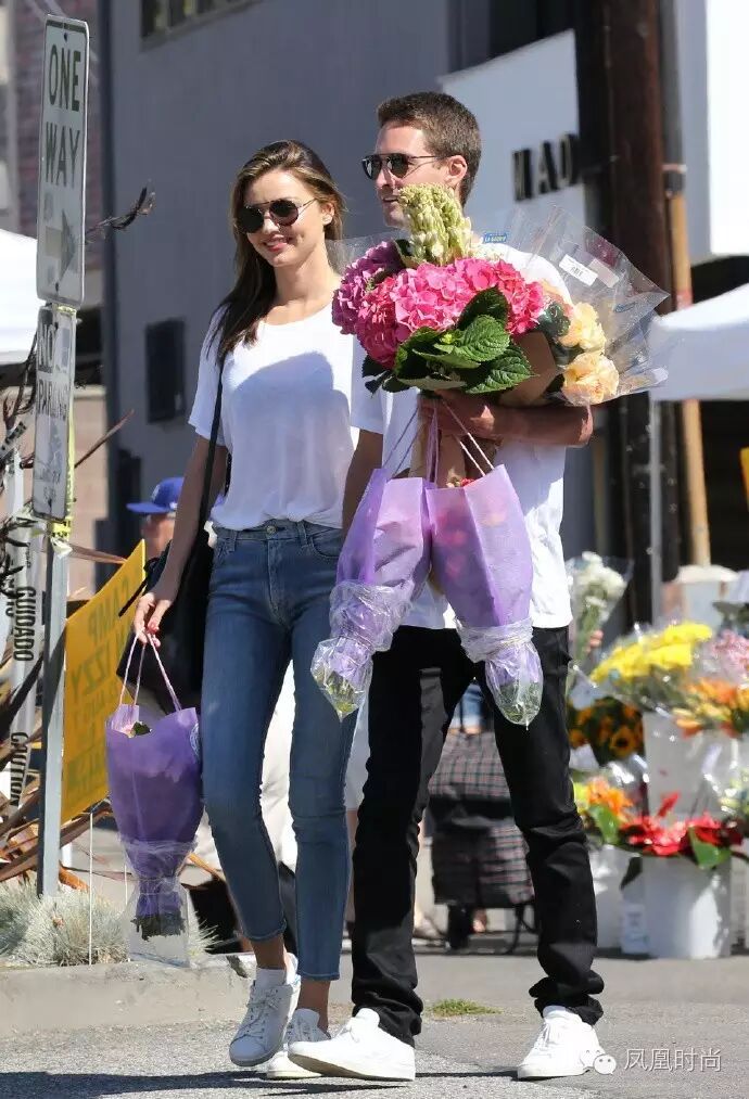恋情曝光时,米兰达和斯皮格尔被拍到在洛杉矶街头买鲜花,在洛杉矶明媚的阳光里笑得那叫一个甜!