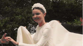 Dior创意总监Maria Grazia Chiuri亲自为可儿设计了婚纱,灵感源自Grace Kelly1956年大婚的婚纱。