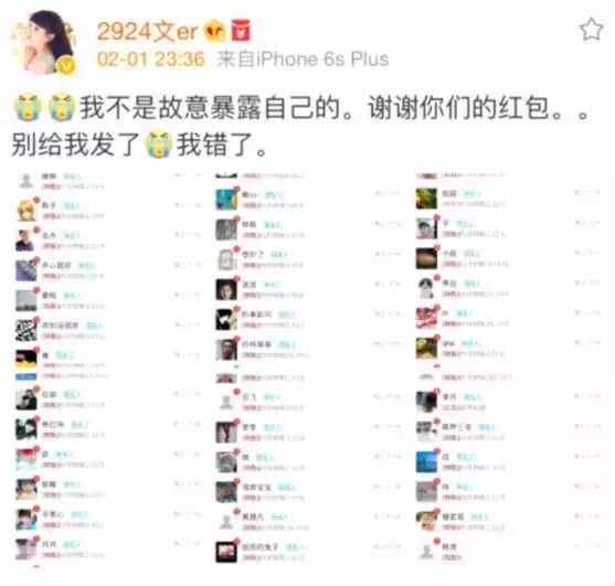 文儿最近不小心在直播的时候把支付宝账号暴露了出来,本来就发愁无法给文儿新年红包的粉丝们终于看到机会。不到一秒钟的时间文儿支付宝瞬间爆炸,近5000元的粉丝红包使文儿新年无比感动~