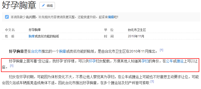 这里小小地科普一下,好孕胸章是台北市为孕妈妈专门准备的。