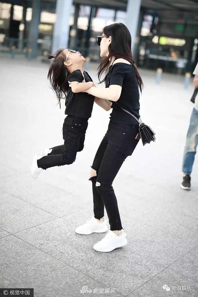 是的,李小璐和甜馨又在机场被网友偶遇了,母女二人都是一身黑、带墨镜,酷帅到底!