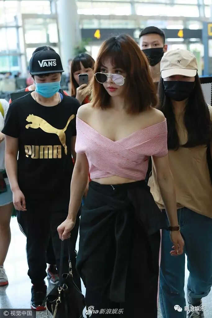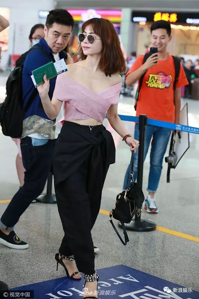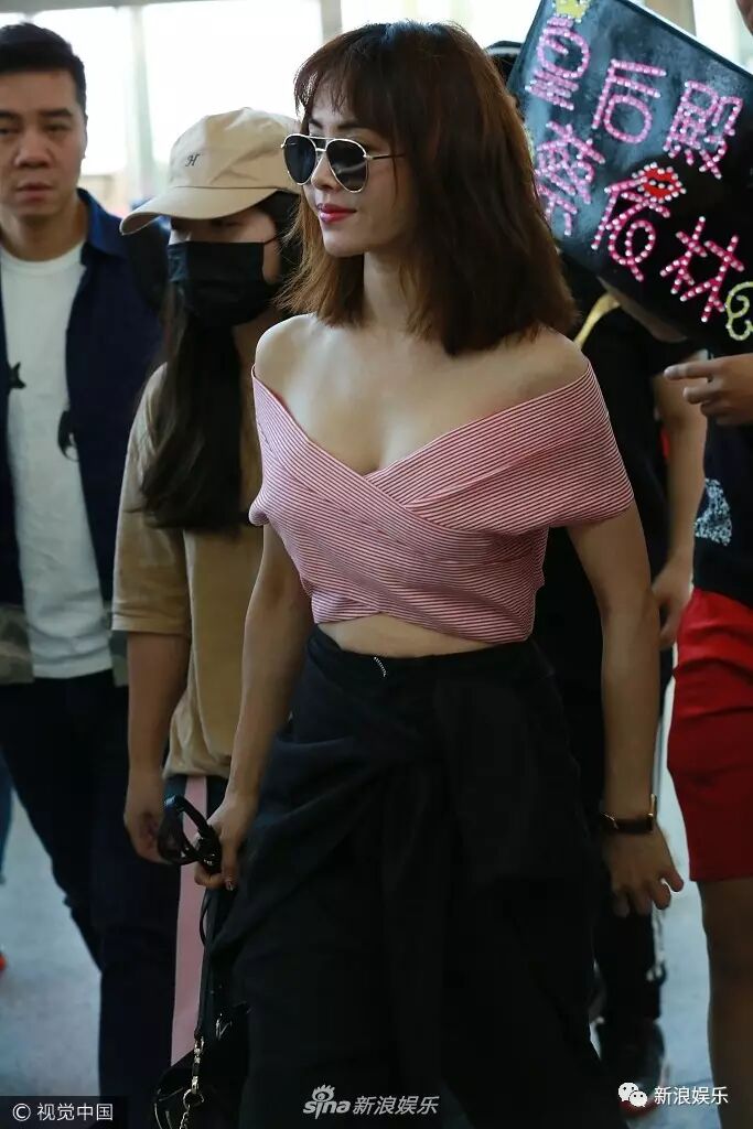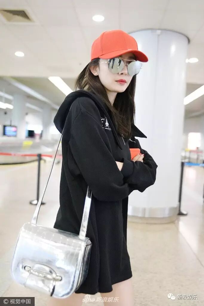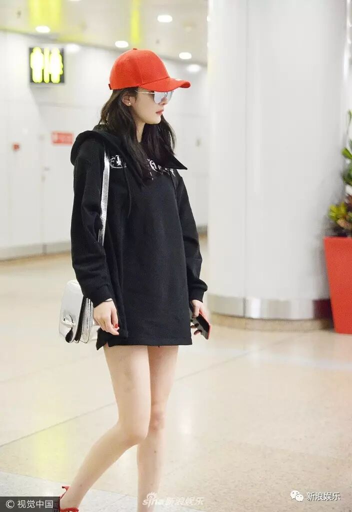 看甜馨这大步向前走的姿势,论机场走秀我最服你!