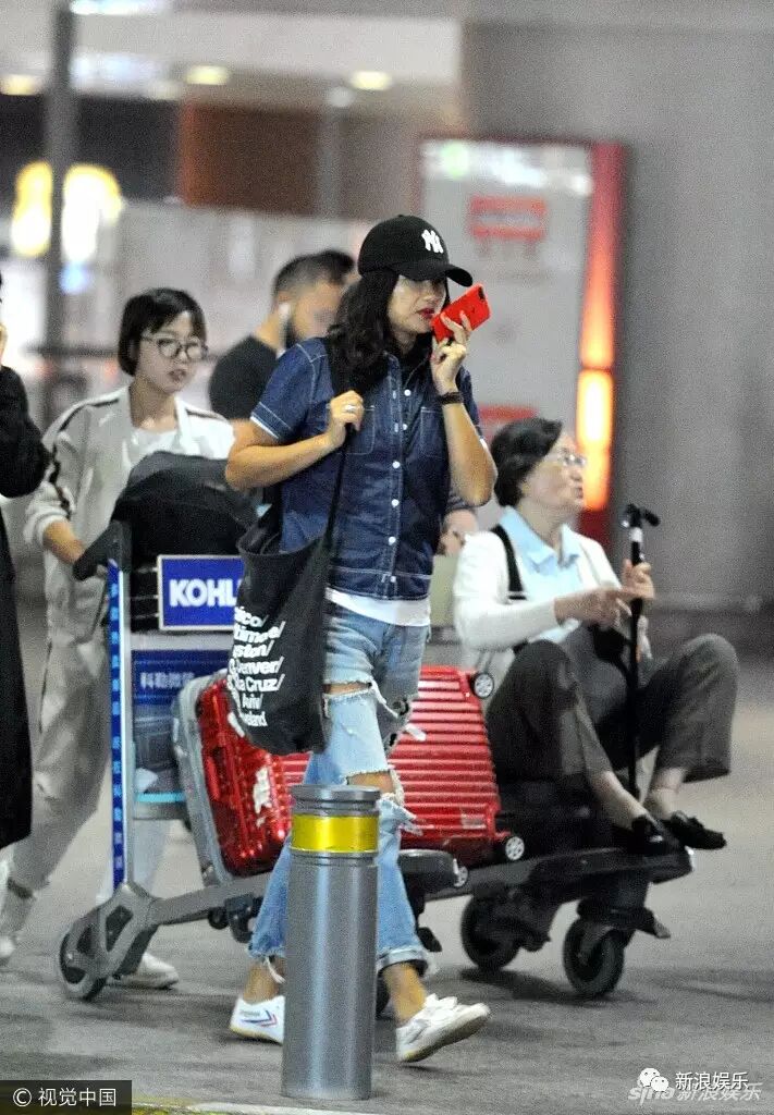今天看到她一组路透,身着破洞牛仔裤、头戴棒球帽现身机场,肌肤略黑红唇难掩疲态