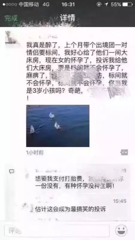 "导游我怀孕了,你要赔我打胎费,要不然我投诉你!“