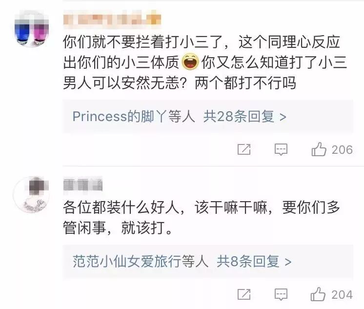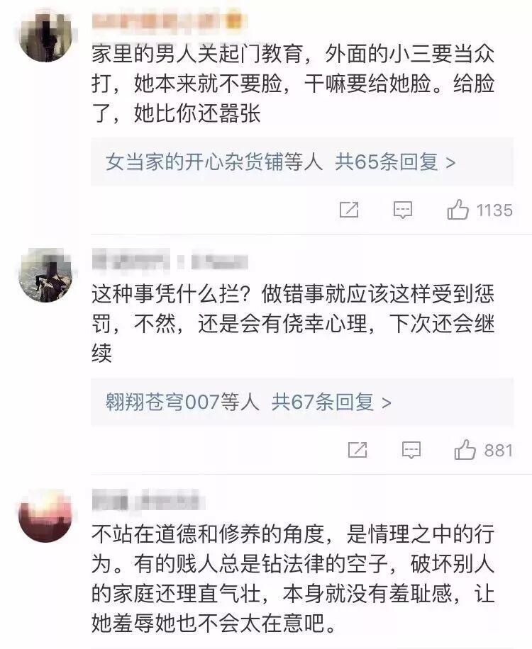 但是,和外国网友不同,中国网友对于这类打小三的反应却是: