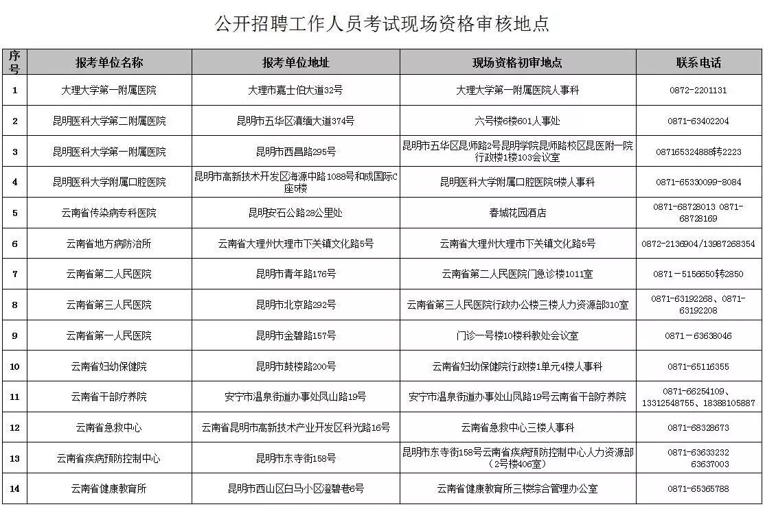 3.现场资格审核后,报考人员可登录云南卫生计生人才网查询招聘岗位进入面试人员名单。