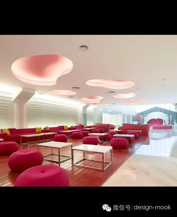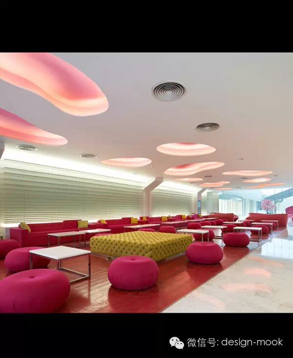 ▶ 设计师安东用颜色、装置或者主题装饰去让内部空间与纯白的外部以及普通区域做出鲜明的对比。改变每一层的主题颜色创造出了一个惊艳的建筑夜景而不是去直接的改造建筑表面。