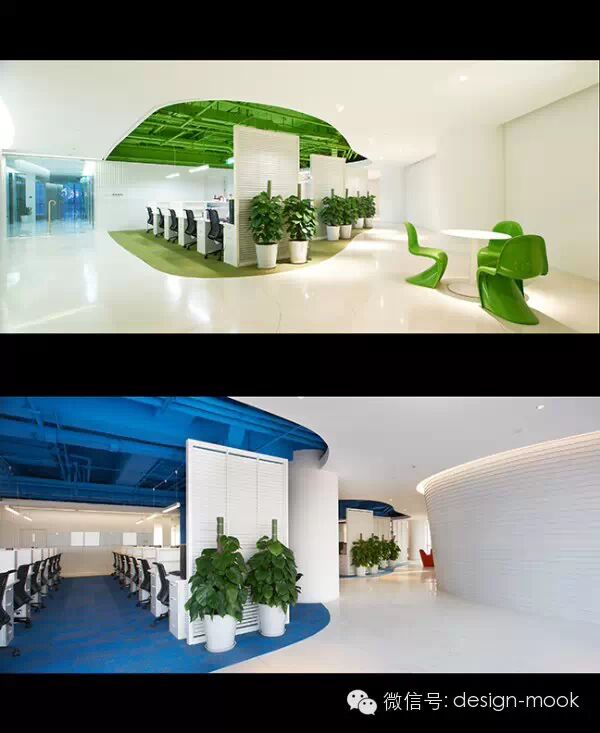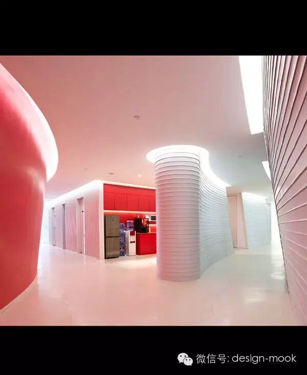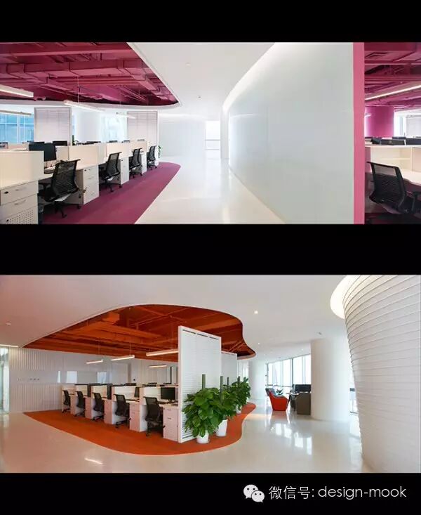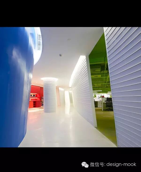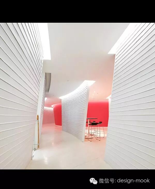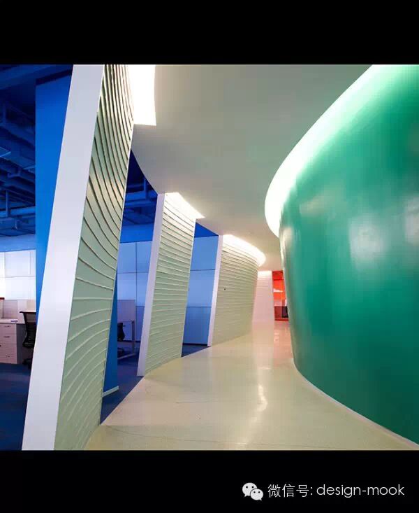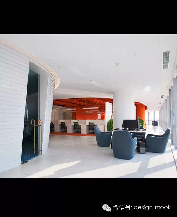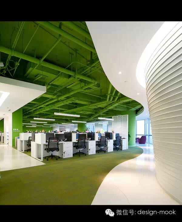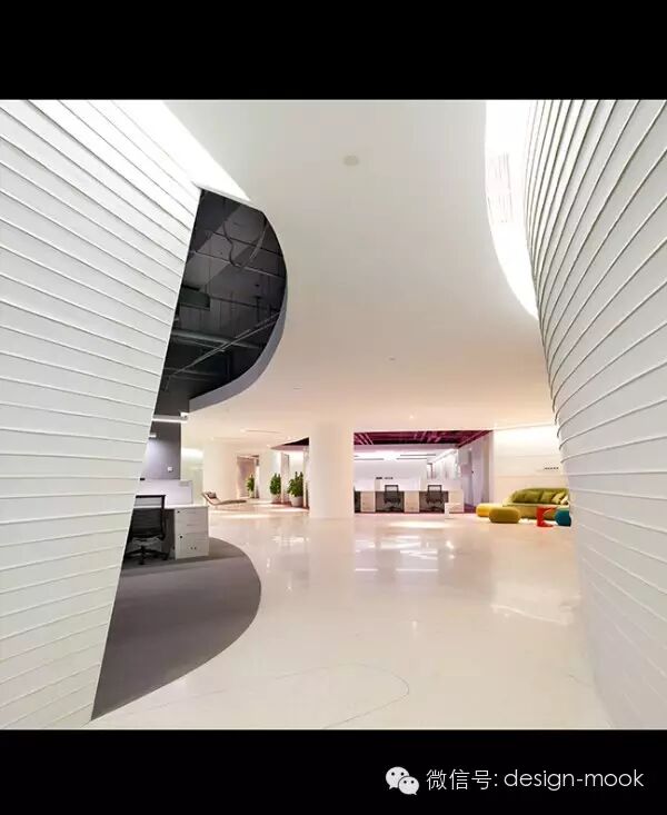 ▶Richard Serra 的雕塑给我提供了灵感,我们决定让办公室每一层的平面有着曲面的隔墙,这些隔墙沿着它们的方向不规则的倾斜,给予了空间一种流动感、动态性以及乐趣,让工作的小伙伴们每天都有新发现。