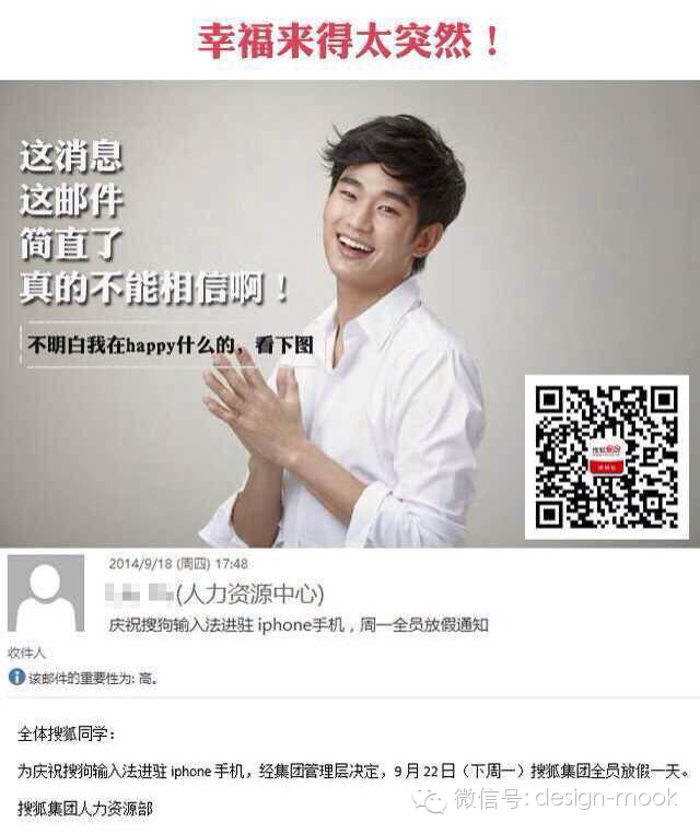 想必各位早有耳闻,为了庆祝搜狐输入法正式进驻iPhone APP,经搜狐集团管理层决定,今天集团全员放假一天。