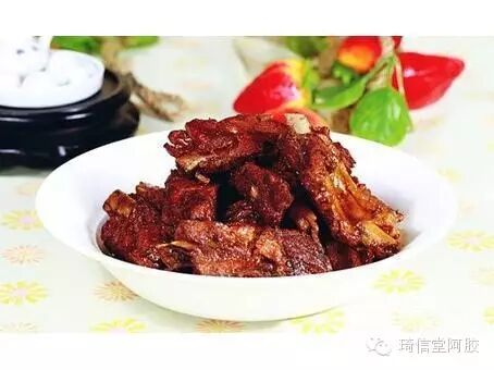 【制作】阿胶10克,砸碎,排骨1人份,常法炖熟即可。