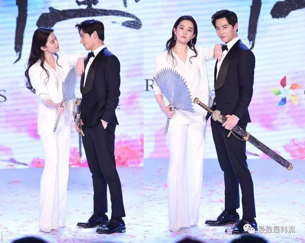 2017年3月30日,刘亦菲和杨洋出席《三生三世》发布会,穿的就是裤子!