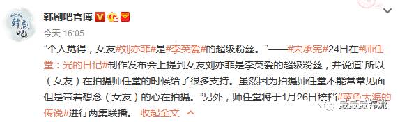宋承宪在《师任堂》的发布会上说刘亦菲的偶像是李英爱…