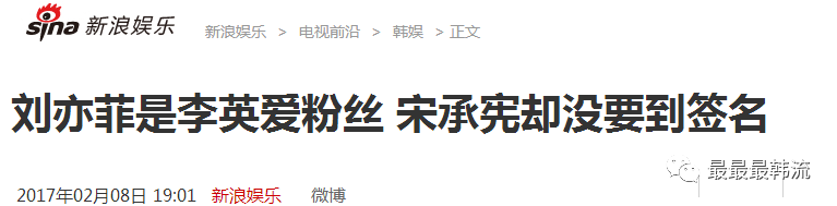 嗯…最近一次关于刘亦菲和宋承宪的新闻,是宋承宪在采访里表示自己虽然和李英爱合作了,但他并没有替天仙要签名。