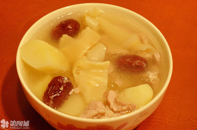 鱼胶瘦肉山药汤,由于鱼胶是补品,后期没敢再吃了,怕太长胎。