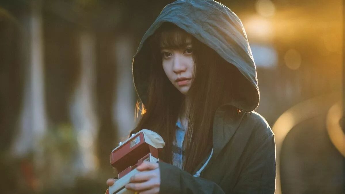 女人的披散长卷发,低着头,双手环抱着身上衣服,她的表情恍惚,脚步有些急促朝宜景小区走去。