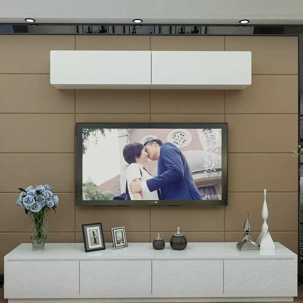 电视背景墙因为有一半是楼主自己添置的柜子,不知道怎么设计好,是半高柜还是顶柜?要不要镂空?要不要搞什么造型?