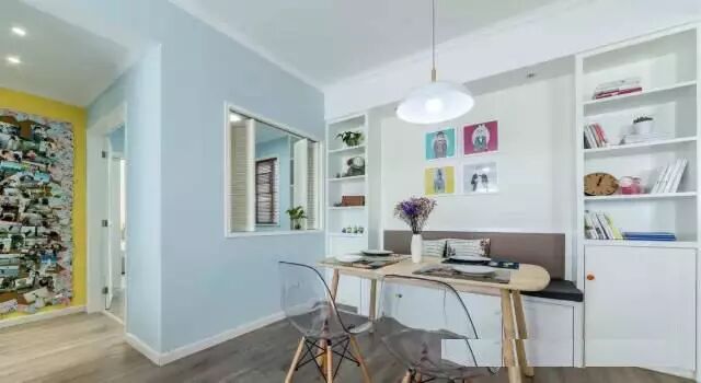 解决方式:这种转角餐厅做卡座很合适,而且可做成1.5mx0.8m餐桌,软包翻盖收纳。