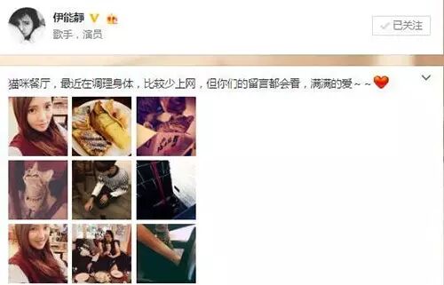 微博中伊能静也表示最近在“调理身体”↓