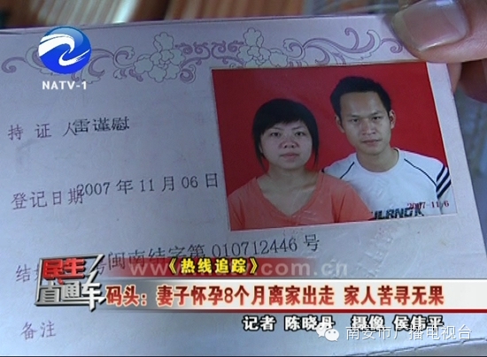 近日,码头镇坑内村的雷先生给我们栏目组打来电话,称他怀孕8个月的妻子海艳于8月22日外出买菜,至今没有回家。希望能够借助我们的平台,让大家帮他找找他的妻子。